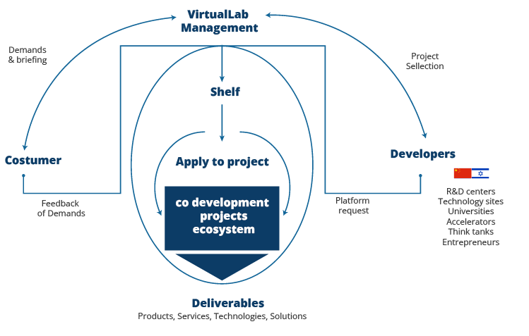 Co-development and innovation platform, where the Client has the possibility to make their demands and briefing available on our project shelf. At the other end, there are partner developers such as research and development centers, universities, accelerators, think tanks and companies that offer their expertise to develop products, services, technologies or solutions for that initial demand. Our work consists of selecting and curating these partners and generating the co-development environment.